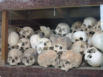 The contents of the newly constructed stupa conatining remains. All around this area are mass graves and still some human bones sticking out of the ground.