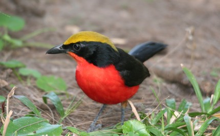 Remarkably tame in the hotel grounds, a yellow-crowned gonalek.