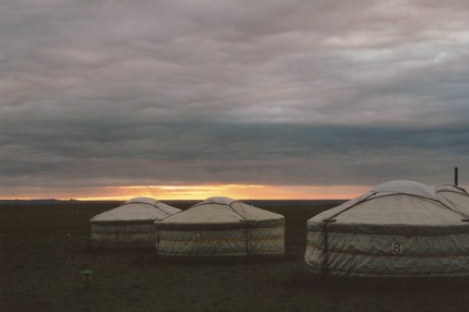Onward to the Gobi itself, where we stayed with a local family and then trekked into the desert on camels and camped overnight. It was freezing. You travel great distances in Mongolia to get between the odd rock or a tree or such like. The guy who owned this place had appeared in the Attenborough spectacular, The Human Planet. His name was Ganbold and the episode was the one about the grasslands, and in particular, the keeping of camels.