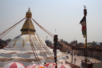After a hearty breakfast we were picked up for a brief city tour which included this lovely stupa seen here from a restaurant terrace where we consumed delicious momos (dumplings) for lunch.